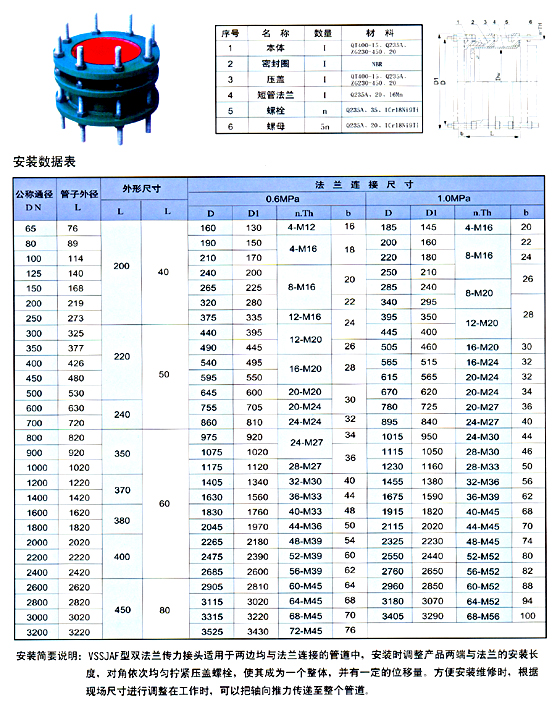 VSSJAF型雙法蘭傳接接頭是我公司的優質產品之一,在上海VSSJAF型雙法蘭傳接接頭廠家中享有極高的品質聲譽與服務評價.