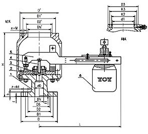 GA41H、A51H型安全閥除杠桿(材料為碳鋼),重錘(材料為鑄鐵),其余材料均和A41H-16C型彈簧式安全閥相同。