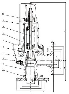 A41H型適用于工作溫度≤300℃的石油氣、空氣、水等介質的設備或管路上。A41Y-P/R型適用于工作溫度≤200℃有腐蝕性介質的設備或管路上,作為超壓保護裝置。連接法蘭標準按JB/T……94/系列1。 |